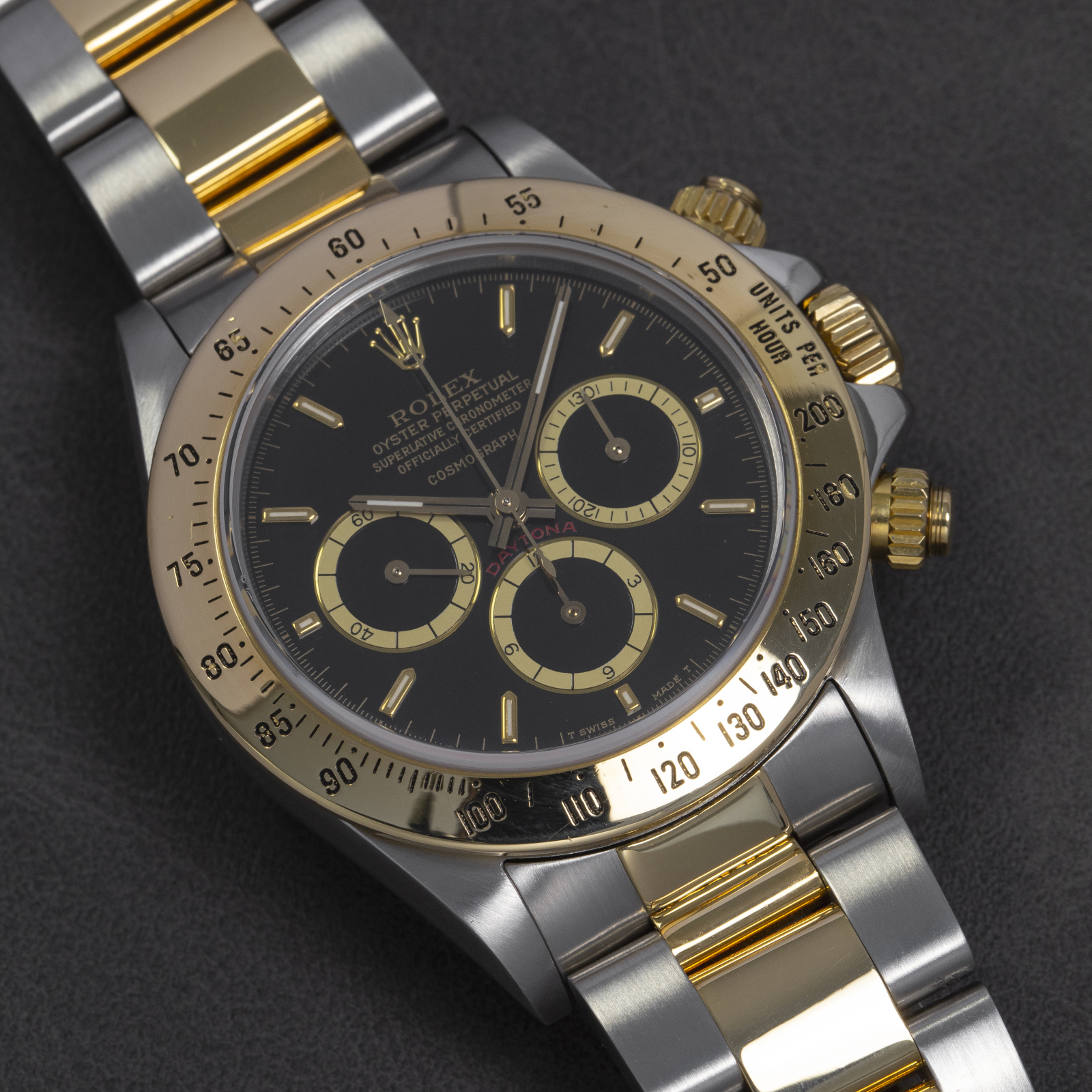 Here we have a very special Rolex Zenith Cosmograph Daytona ref. 16523 from 1989 in stainless steel and 18ct solid yellow gold.